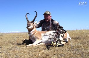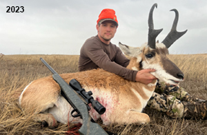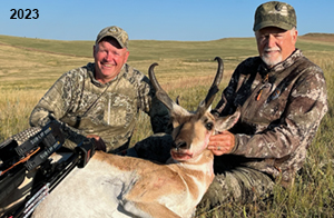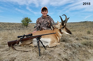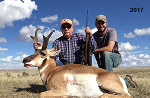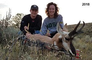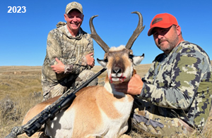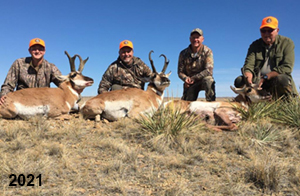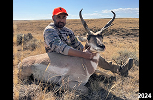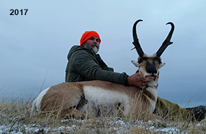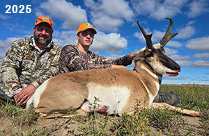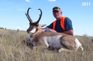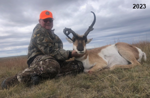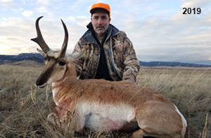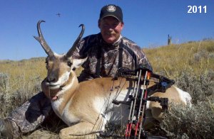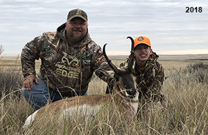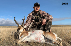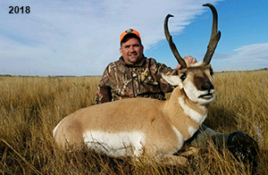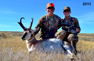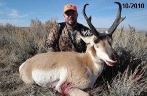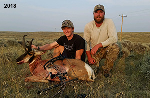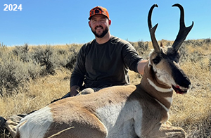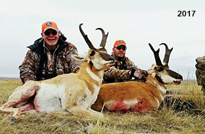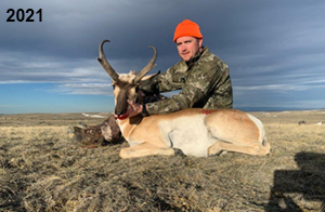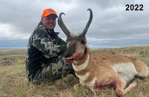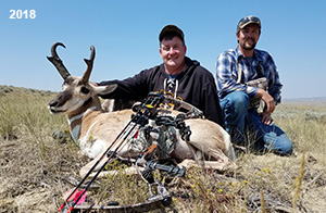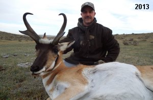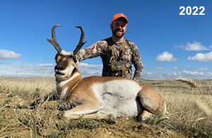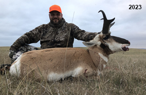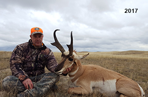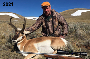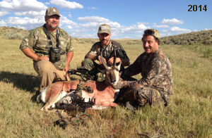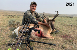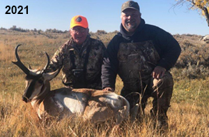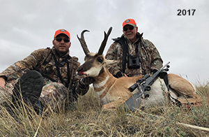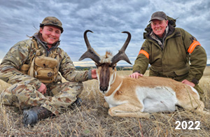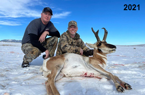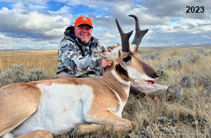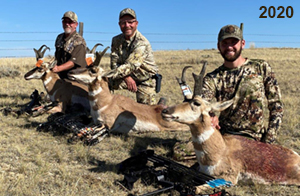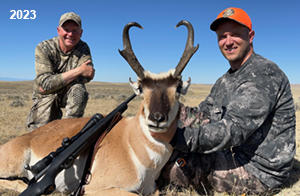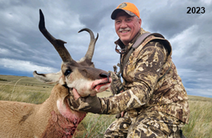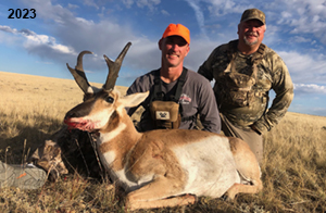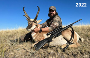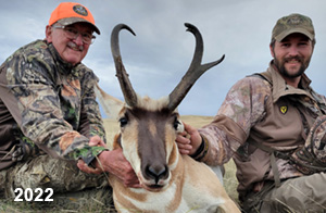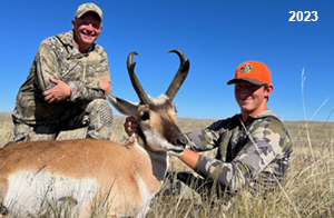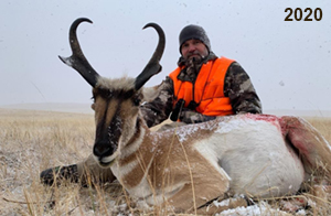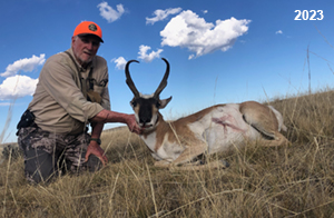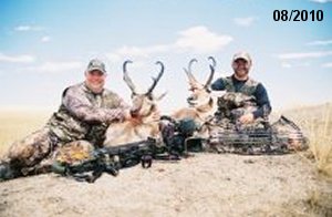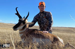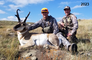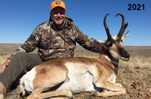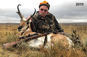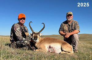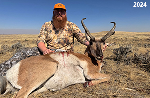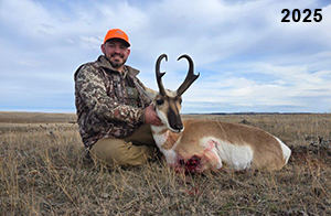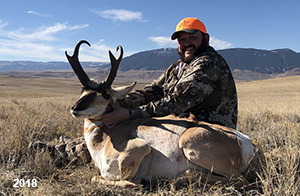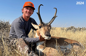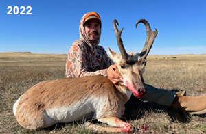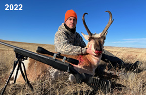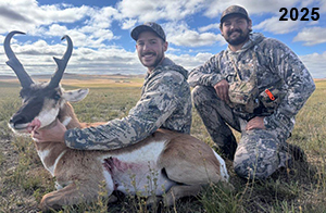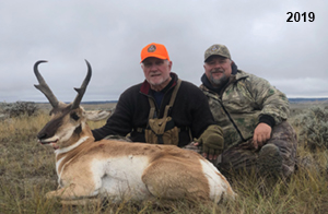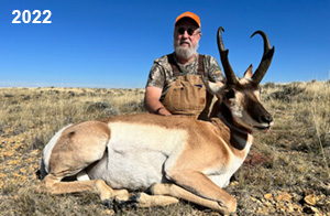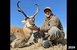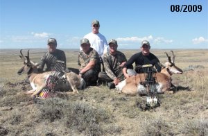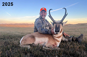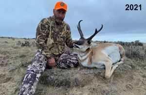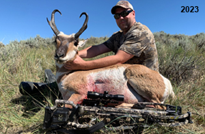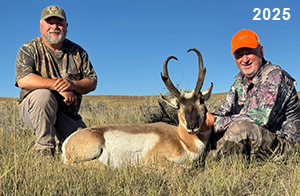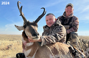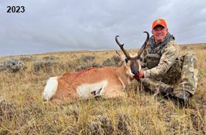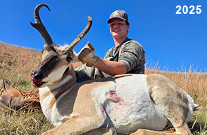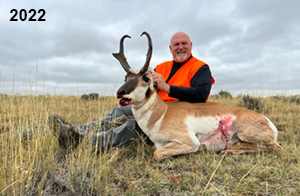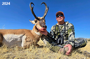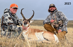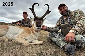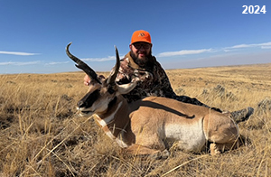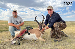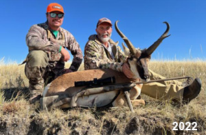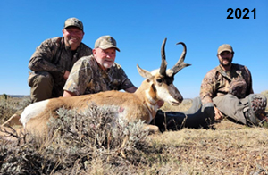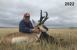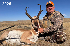 Antelope We also offer straight antelope hunts with both bow and rifle. Our success on both the bow and rifle is over 95% opportunity. All antelope hunts are guided 3x1 or 2x1. 1x1 guided hunts are available for an additional fee. We offer hunts in many areas that take 0-8 Antelope Preference points. These hunts offer a hunter opportunity at quality antelope. These hunts are offered from our lodge or motel. Our bow hunts are offered August 15-17. The method we use for hunting the antelope with a bow are blinds, set up over water holes. Bow hunters have excellent chances at Pope and Young quality antelope. Our rifle antelope hunts are hunted from October through the early November. In our 2025 season we took 3 antelope archery hunters who all were able to harvest their pronghorn buck. We hunted 22 antelope-only rifle hunters, all 22 were successful in harvesting their buck. An additional 15 combination hunters harvested 15 antelope bucks. During the 2024 season we hunted 5 antelope archery hunters and harvested 3 bucks; 100% shooting. We took 14 antelope-only rifle hunters and all 14 harvested their antelope buck. An additional 16 antelope hunters combined their antelope hunt with deer, bull elk, and cow elk. These combo hunters harvested 11 antelope bucks. In our 2023 season we hunted 7 antelope archery hunters and harvested 5 bucks. We took 33 antelope rifle hunters and harvested 31 bucks. We had 100% opportunity. During the 2022 season we hunted 9 antelope archery hunters and harvested 5 bucks. We took 32 antelope rifle hunters and harvested 28, with 100% opportunity. In the 2021 season we hunted 2 antelope archery hunters and harvested 2 bucks. We had 36 rifle hunters and harvested 33, with 100% opportunity. During the 2020 season we hunted 5 antelope archery hunters and harvested 5 bucks. In September and October, we hunted 32 rifle hunters and harvested 31 bucks, with 100% opportunity. In the 2019 season we hunted 7 archery hunters and harvested 6 bucks. We hunted 26 rifle hunters and harvested 26 antelope bucks. During the 2018 season we hunted 15 antelope bow hunters and harvested 8 bucks. We hunted 24 antelope rifle hunters and all harvested mature antelope bucks. |