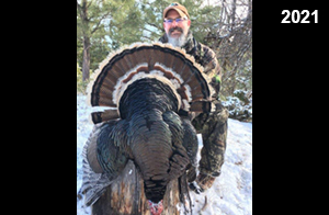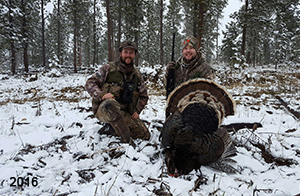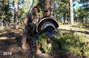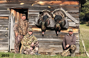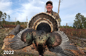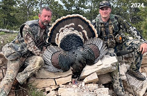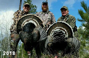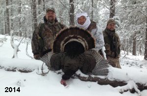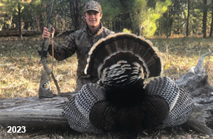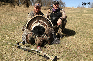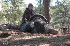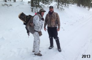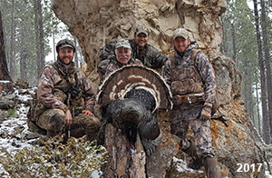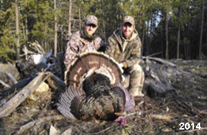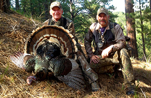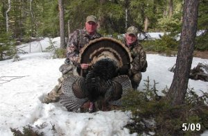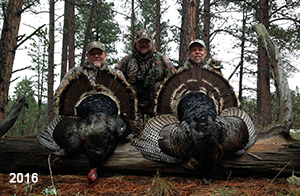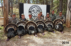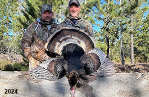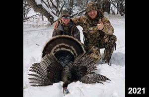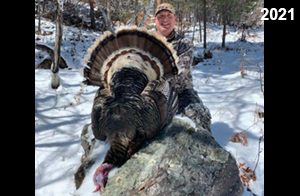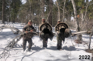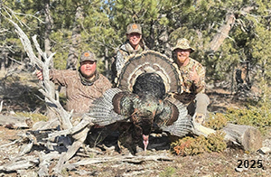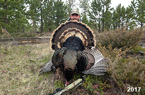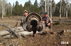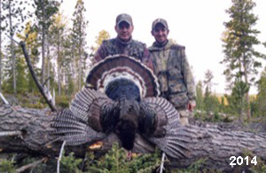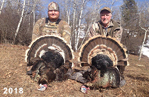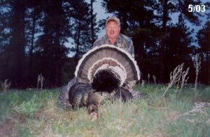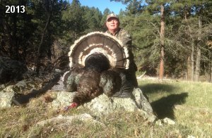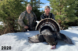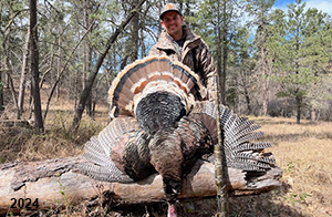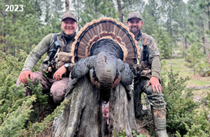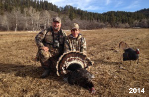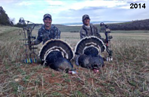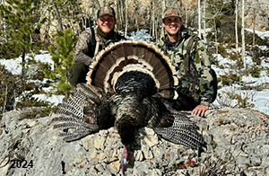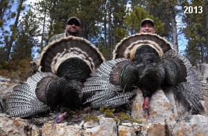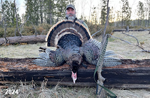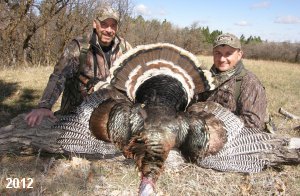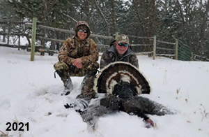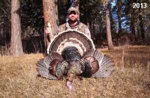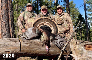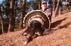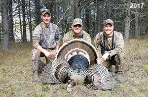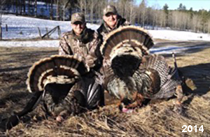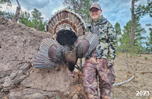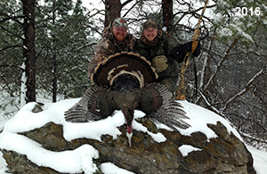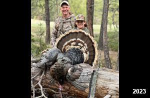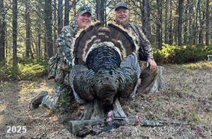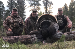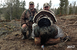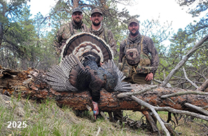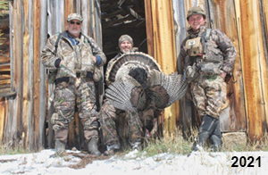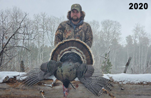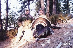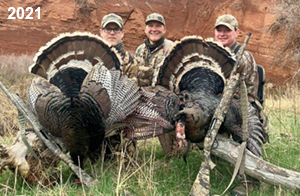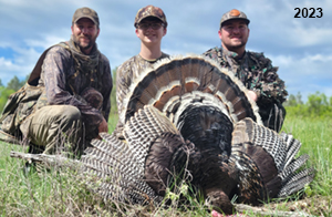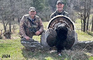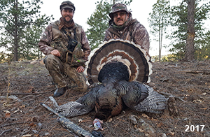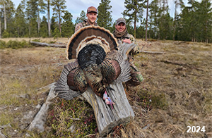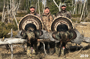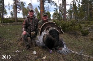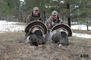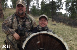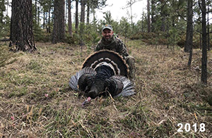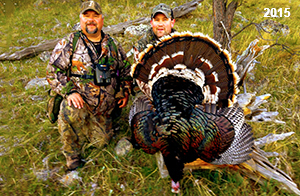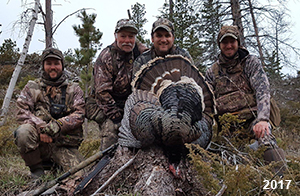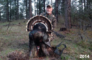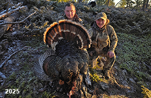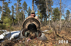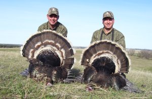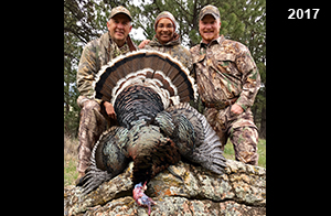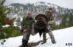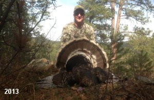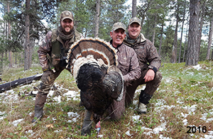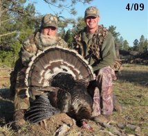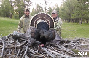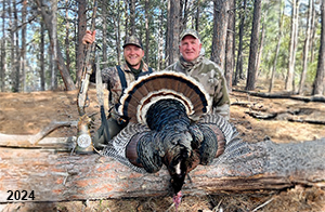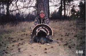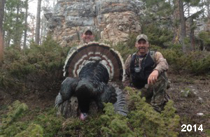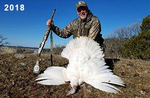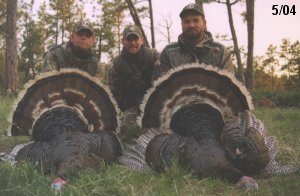 Spring Turkey Our season runs April 20 through May 31. Hunts are three days for single-bird hunts and four days for two-bird hunts. Call or e-mail for specific dates. We assist with obtaining the licenses in Wyoming and South Dakota. Licenses will be at the Lodge when you arrive in the Spring. Over the past 30 years our hunters have had excellent success on long-bearded birds. Our big leases hold excellent numbers of Merriams. Combined with very little hunting pressure, this makes for excellent calling opportunities on mature gobblers. 2025 was an amazing spring turkey season! We took 84 turkey hunters who harvested 76 Merriam Toms. However, shooting opportunity was 98% for our hunters this spring. Out of our 84 turkey hunters, 32 chose to hunt the second Meriam option. Twenty-two of these hunters were successful in harvesting their second Merriam Tom. We have had excellent hatches over the past three years, and we anticipate another outstanding season in 2026. Our 2024 season went awesome! We took 90 hunters who harvested 72 Merriam Toms. 43 of these hunters hunted the second bird in South Dakota. 30 of these harvested a second gobbler. With the excellent hatches the past couple of years, we had an extraordinary amount of jakes this spring. With the overabundance of jakes grouped up, this caused the mature gobblers to gobble much less than normal. We anticipate, after seeing the number of jakes, an exceptional turkey season in Spring 2025. The 2023 season was very successful. We took 92 hunters who harvested 86 Merriam Toms. 34 of the hunters hunted the second bird in South Dakota. 26 of them harvested a second gobbler. The 2024 season looks very promising due to really good hatches in the last few years and really great numbers of jakes that were around during this past 2023 season. The 2022 season went great! We took 88 hunters who harvested 84 Merriam Toms. 44 of these hunters chose to do the second bird hunt in South Dakota. 19 of these harvested a second gobbler. Our 2021 season went well. Because of the virus and 2020 season rollover, we took in the most hunters we've ever had. 95 hunters harvested 88 birds in Wyoming. Hunters who chose to hunt the second bird in South Dakota were around 50% harvest. Throughout the season, we saw large numbers of jakes. The 2020 season was a bit challenging. Due to the virus restrictions, we cancelled the April hunts and all April hunters were given the opportunity to move into 2021 or come in May. We were able to hunt 46 hunters in May. These hunters harvested 42 mature Merriam toms. 35 of these hunters were on the two-bird combo, and 28 of them were able to harvest the second bird. The 2019 season had good success considering cold snowy conditions throughout most of the season. 88 hunters harvested 78 mature toms. 57 of the hunters chose to hunt the second bird; they harvested 41 toms. There were A LOT of missed birds this year, over 50. Although we had poor weather in May, it got better at the end of the month and we ended up with a tremendous hatch. 2018 spring turkey season was awesome! We had 82 turkey hunters and harvested 78 birds. 55 of these hunters chose the two-bird hunt. 48 of them harvested their second Merriam tom. Again, this year we had over 50 misses. We are seeing a lot of jakes and had another good hatch. |