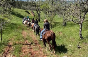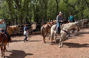Trail Rides Seven J Outfitters offers scenic trails rides starting just 5 short miles from downtown Sundance. Leave the stress and hurry of the city behind as you enjoy peaceful horseback riding through the beautiful Bear Lodge Mountains for an hour or two, or plan a longer excursion. Our professional guides are ready for those who have never ridden a horse or those who have and would like to enjoy a trail ride through some beautiful country. We prefer to have rides scheduled a little in advance, but we do our best to accommodate spur-of-the-moment rides, as well. Give us a call today! Trail rides are available June 1 through August 15.